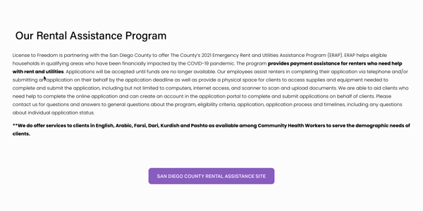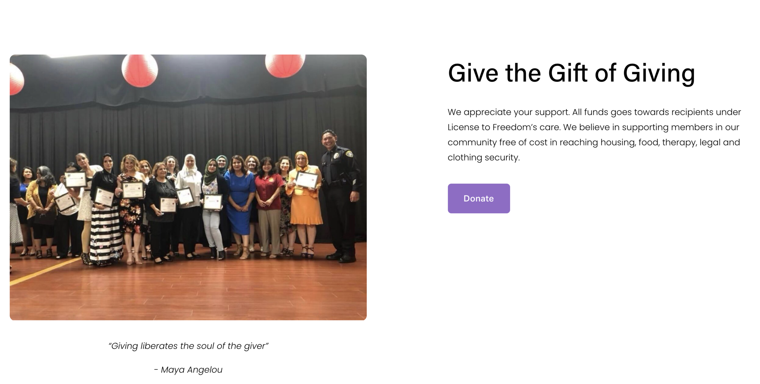 License to Freedom (LTF) is a non-profit organization dedicated in aiding refugee and immigrant survivors of domestic and relationship abuse within the San Diego region.