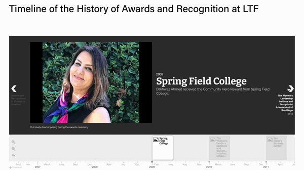 With code, I created a timeline to showcase the achievements LTF has garnered over the years. I chose a timeline to break up the text on the screen and create a visual element which can be more engaging to our audience who are interested to know about the organization and it’s credibility.